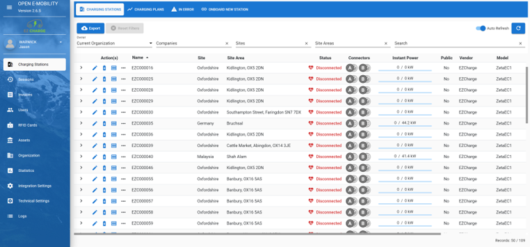 - straightforward onboarding of new OCPP v1.6 + chargers